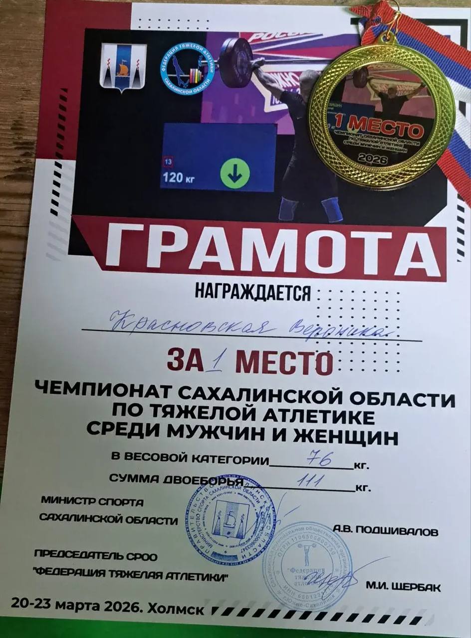 Особого внимания заслуживает тот факт, что для сотрудницы охинской полиции это был дебют в данном виде спорта. Несмотря на отсутствие соревновательного опыта в тяжелой атлетике, Вероника смогла справиться с волнением и обойти более опытных соперниц.
