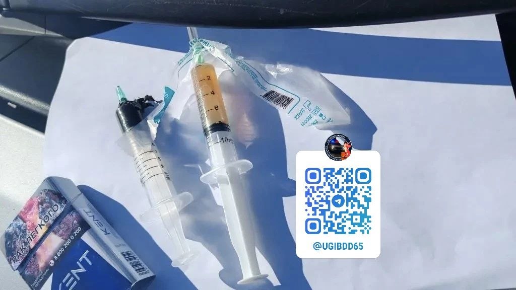 В ходе личного досмотра мужчины в кармане куртки обнаружено два шприца с веществом темно-зеленого и желтого цвета.