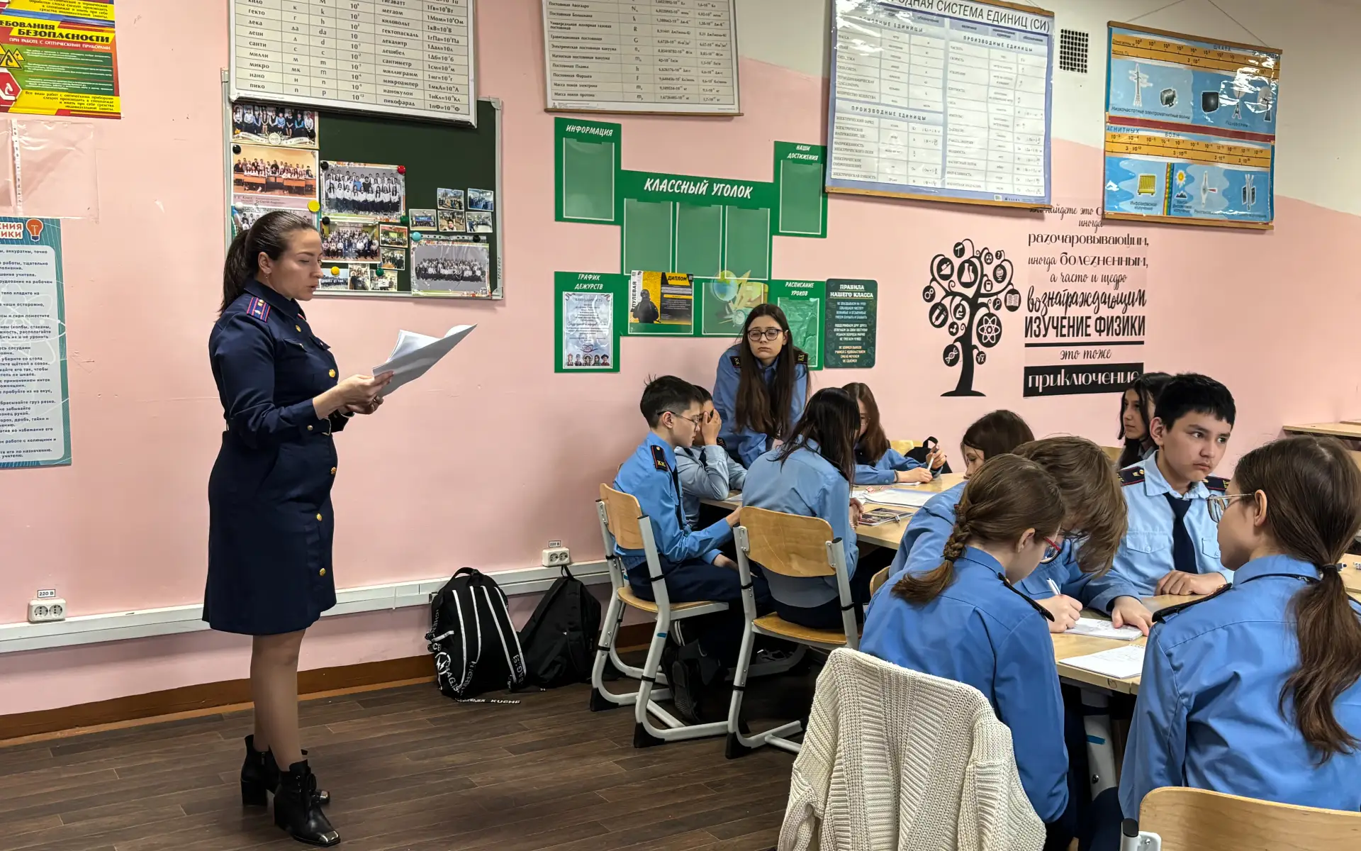 В рамках профориентационной работы и повышения правовой грамотности среди молодёжи помощник руководителя следственного управления СК России по Сахалинской области (по общественно-политической работе) Смекалова Мария провела для воспитанников кадетского класса интеллектуальную игру «Предварительное следствие».