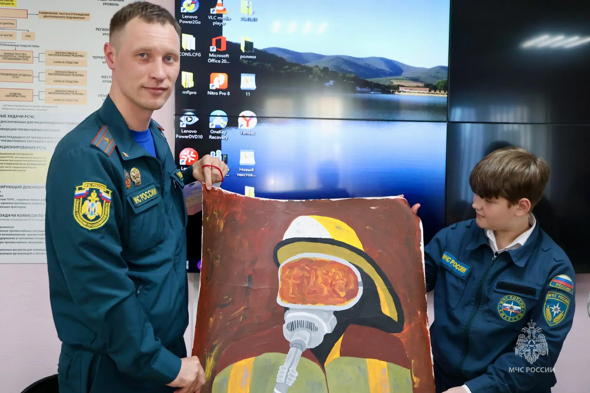 В завершение ребята поздравили сотрудников чрезвычайного ведомства с наступающим праздником, а также вручили открытки и плакаты.