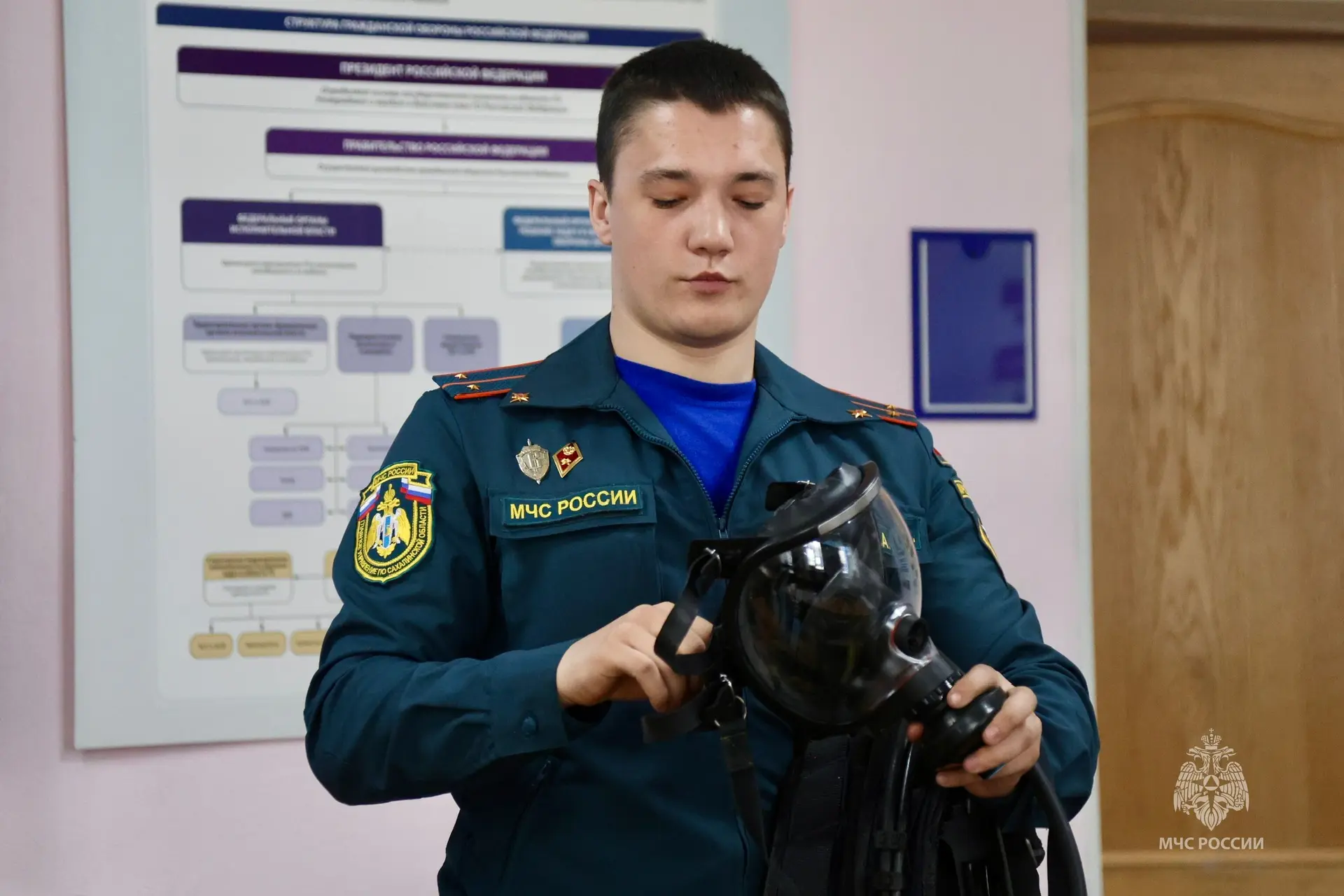 В преддверии Дня пожарной охраны сотрудники МЧС Сахалина провели профориентационное занятие для кадетов.