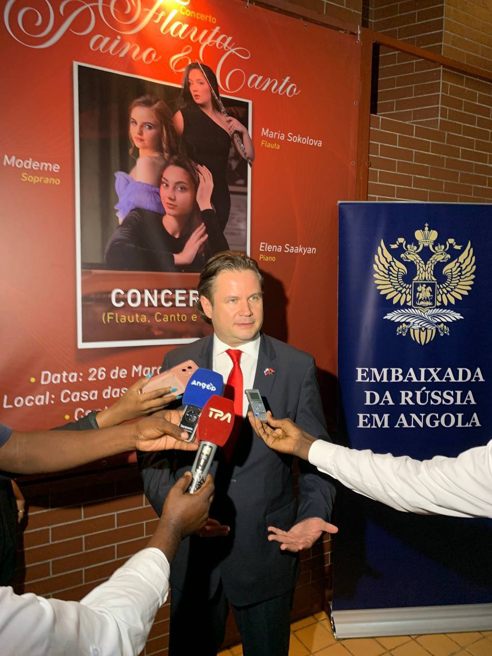 В приветственном слове временный поверенный в делах России в Анголе А.Е.Брянцев рассказал о потенциале фонда "Русский мир", подчеркнул важность музыкальной дипломатии как одного из ключевых направлений развития гуманитарного сотрудничества между двумя странами.