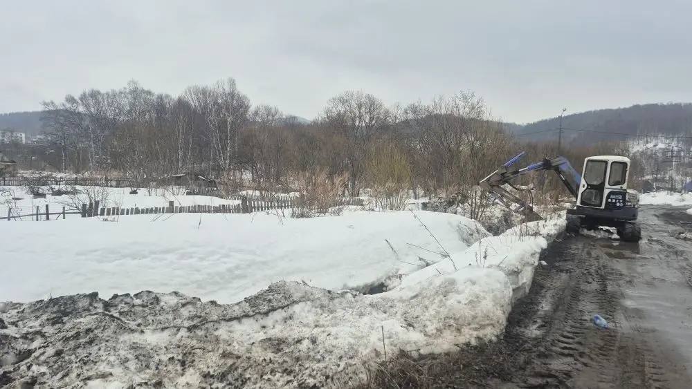 Коммунальные службы расчищают водопропускные трубы под дорогами, чтобы талая вода свободно уходила и не затапливала проезжую часть.