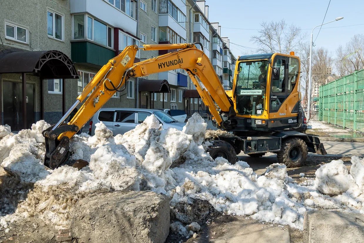 С помощью техники удаётся работать быстро и качественно, не повреждая зелёную зону. Мы уже применили экскаваторы на многих адресах, и проблему с обледеневшими снежными массами удалось решить,