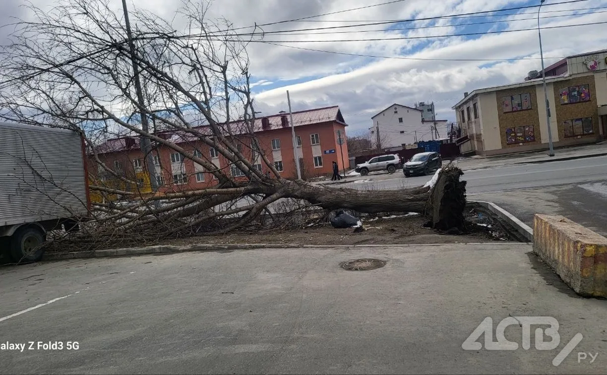 Упавшие деревья и блэкаут в селе: сильный ветер прошёлся по южным районам Сахалина