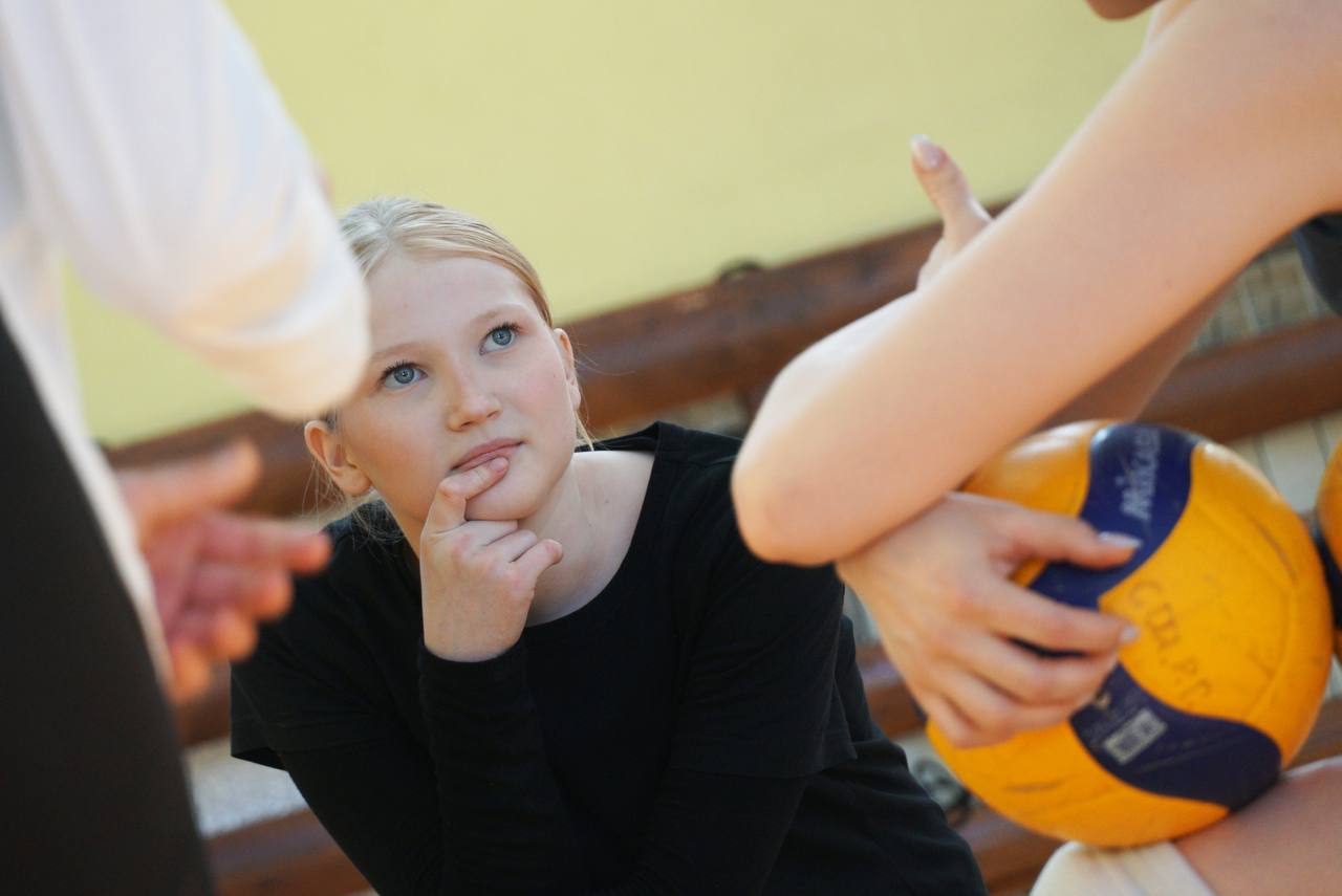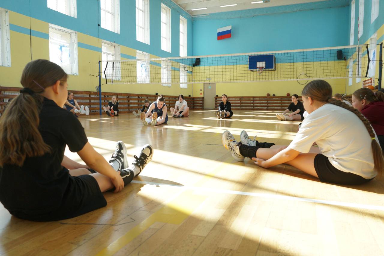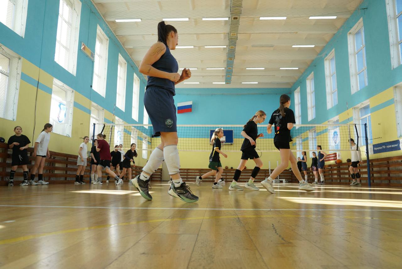 После разминки и индивидуальных занятий в группах участники сыграли товарищеский матч, чтобы у юных волейболисток была возможность применить полученные навыки
