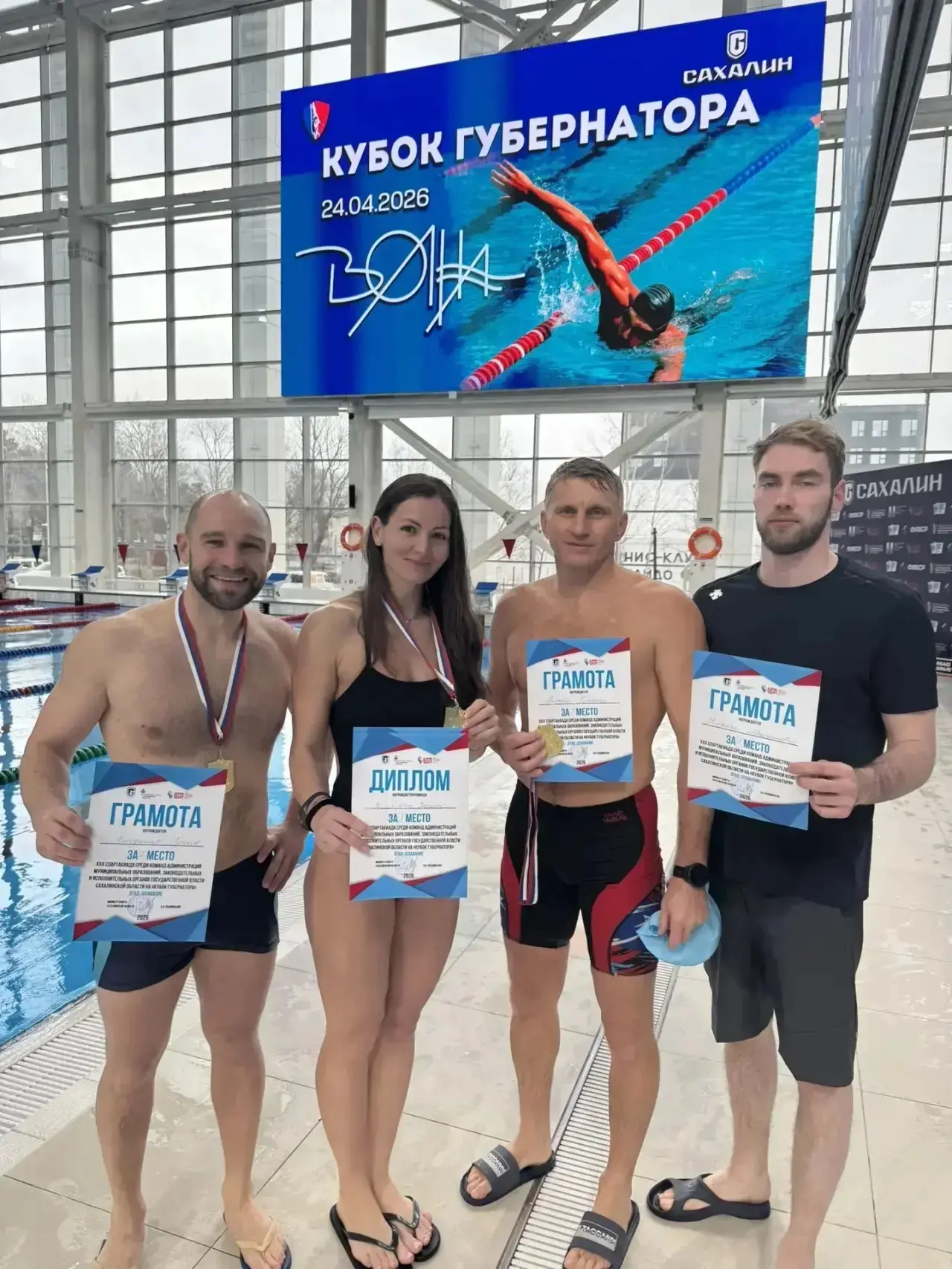 Команда Южно-Сахалинска заняла 1 место на соревнованиях по плаванию в 30-й юбилейной Спартакиаде между муниципальными образованиями Сахалинской области на кубок губернатора.
