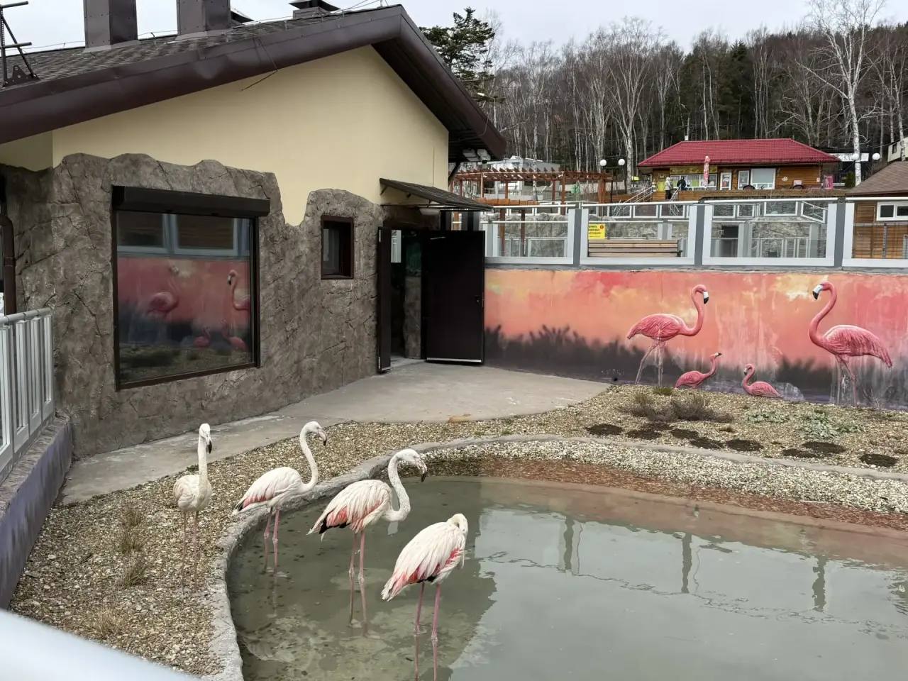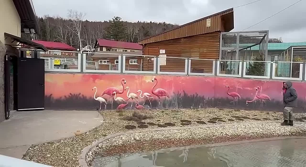 Розовые фламинго в сахалинском зоопарке ждут тепла