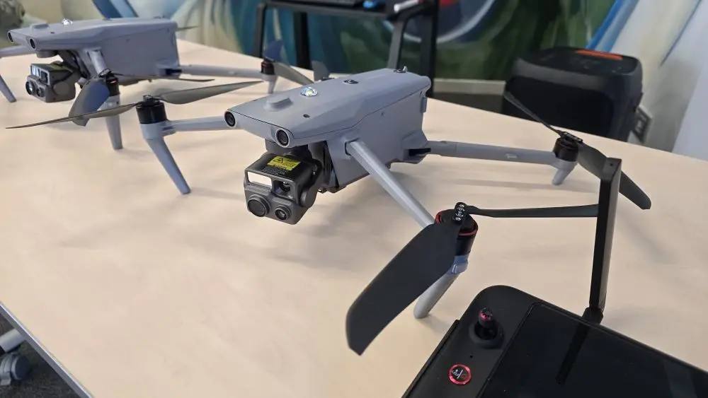 Один коптер - ретранслятор для второго. Простыми словами - антенна. Аппарат зависает в воздухе и обеспечивает стабильное соединение до 20 километров.