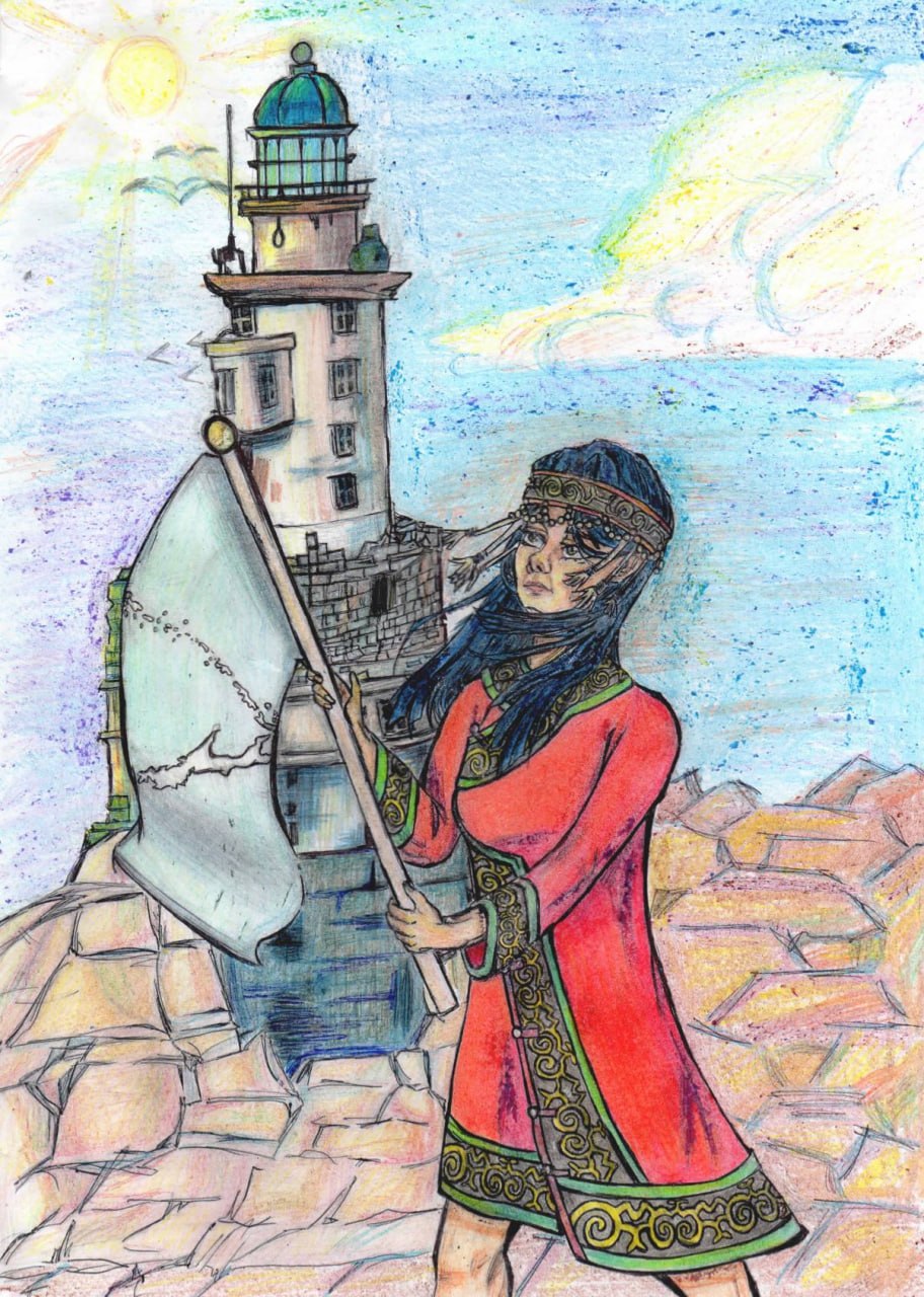 Ученица школы №2 посёлка Ноглики Ясмин Баринова представила на конкурс «Большое путешествие по стране: Дальний Восток» работу «Ветер Сахалина — голос предков».