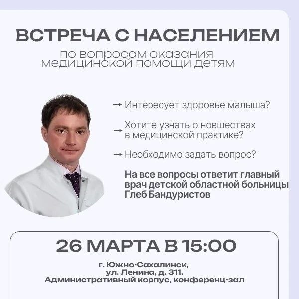Сахалинских родителей приглашают на встречу с главврачом детской областной больницы