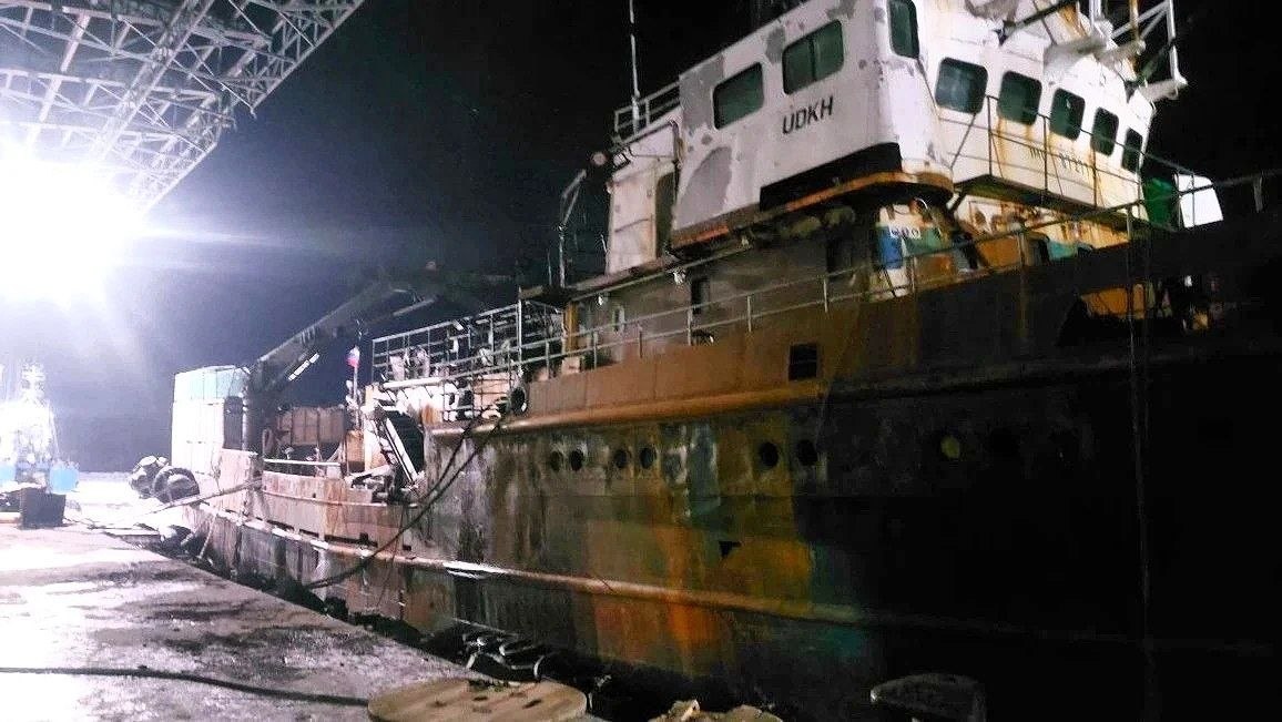 Цех обработки краба задымил на судне, пришвартованном в порту на Шикотане