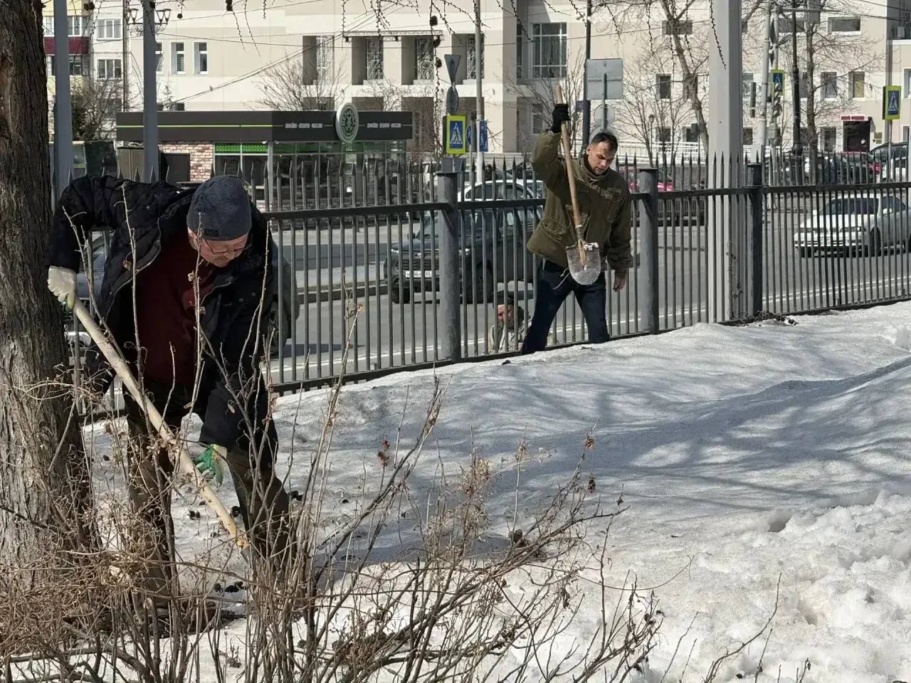 Редакция вступила в месячник чистоты досрочно. Официально в областном центре он начнется 1 апреля. В течение месяца сотрудники предприятий и организаций будут наводить чистоту на своих территориях. Пока в основном ворошат снег и отбивают наледь. Позже перейдут к уборке мусора. Присоединиться к месячнику могут все желающие. А если у вас нет нужного инвентаря - можно обратиться в управляющую компанию. Лопаты и грабли выдадут!