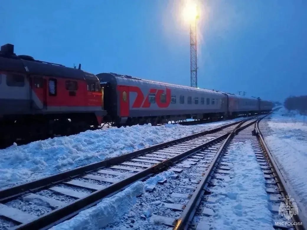 В 23:55 работы завершили: локомотив вернули на железную дорогу, но оставили на месте для расследования случая, передаёт МЧС.