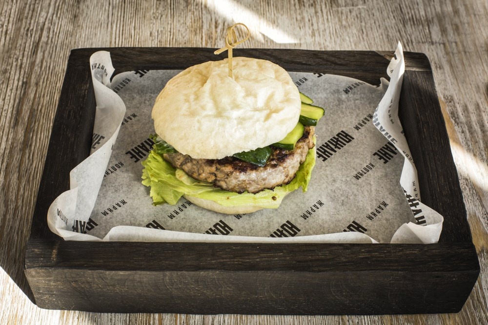 Тщательно промыть тушку нутрии. Аккуратно срезать мякоть, как при разделке курицы или кролика.Убрать мясо в морозильник на 15-20 минут — это позволяет добиться отличной консистенции фарша.Измельчить нутрию, затем приправить солью и перцем. Сформировать котлеты по 200 г и оставить в холодильнике.Приготовить паровые булочки: смешать сухие компоненты с жидкими (при комнатной температуре), замесить тесто до эластичности.Оставить тесто на сутки в холодильнике, затем сформировать булочки по 70 г и оставить растаиваться, пока они не увеличатся в три раза. Выпекать на пару при 100 градусах около 25 минут.Смешать анчоусы, каперсы, оставшийся чеснок и пармезан, добавляя оливковое масло до однородности. Взбить желтки с горчицей и, постепенно вливая растительное масло, довести до нужной консистенции. В конце добавить лимонный сок и соль.Разогреть гриль или сковороду до 200-250 градусов и обжарить котлеты по 2 минуты с обеих сторон до корочки, сохраняющей сочность внутри.Разрезать булочки, смазать соусом, положить котлету, добавить листья салата айсберг и ломтики свежего огурца.