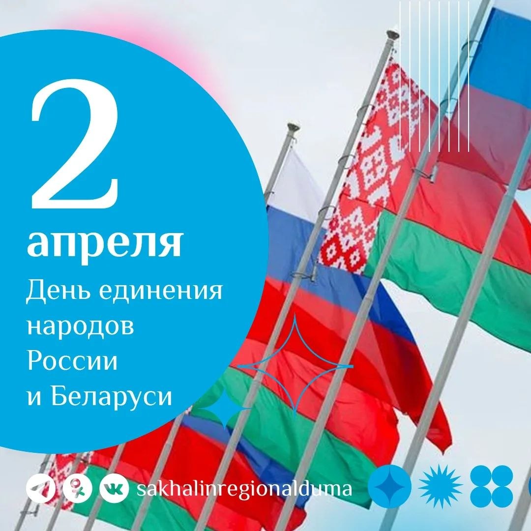 Сегодня мы отмечаем День единения народов России и Беларуси. Дружба и сотрудничество между нашими странами основаны на общей истории, богатых культурных связях и взаимном уважении. Сахалинская областная Дума активно взаимодействует с белорусскими коллегами, обмениваясь опытом в законодательной сфере, обсуждая актуальные вопросы развития и реализуя совместные инициативы. 9 июля 2024 года было подписано Соглашение о межпарламентском сотрудничестве с Гродненским областным Советов депутатов, а 27 июня 2025 года мы наладили партнерские связи с парламентами Минской и Гомельской областей. Наши отношения основаны и всегда будут строиться на доверии, поддержке и взаимопонимании. Всех поздравляю с праздником! Желаю крепкого здоровья, счастья и успехов, а нашим странам – динамичного развития и процветания,– написала в своих социальных сетях Елена Касьянова.