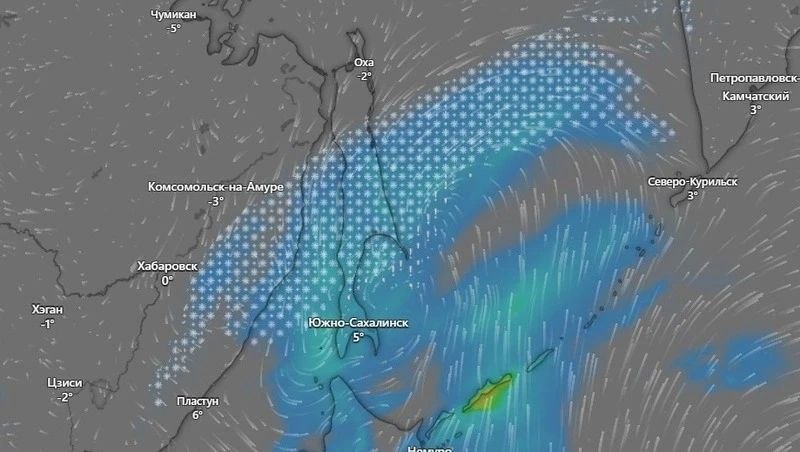 Предстоящие выходные, 4 и 5 апреля, не порадуют сахалинцев ясным небом. По данным портала Windy, на островной регион надвигается непогода, которая принесет с собой сильные смешанные осадки и порывистый ветер.