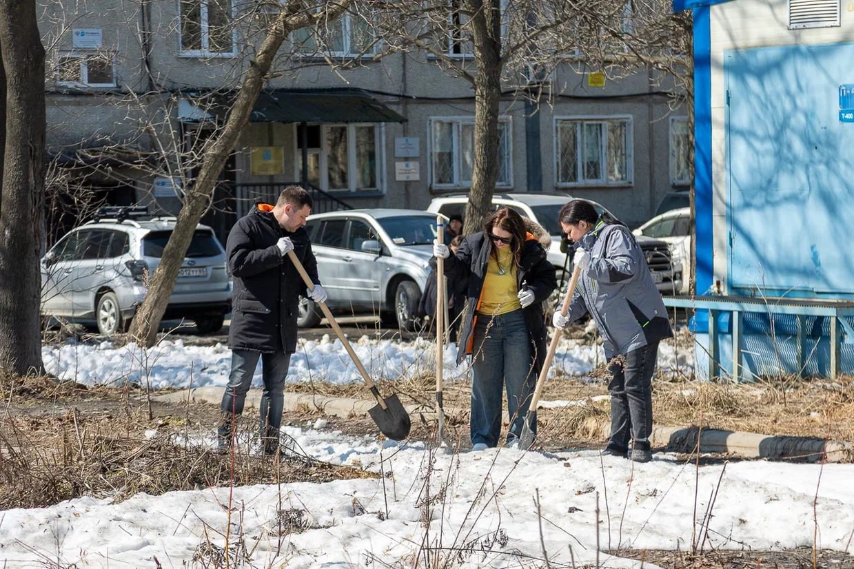 К ней присоединились горожане, трудовые коллективы, общественные организации и волонтёры. Вместе они вышли на улицы, чтобы привести город в порядок после зимы.