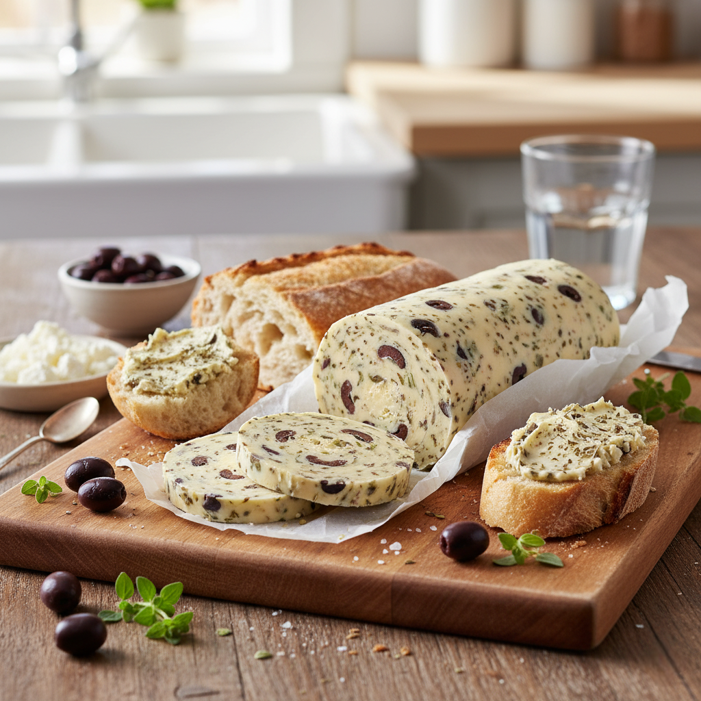 Важно держать масло мягким: вытащить его за 1–2 часа до начала, чтобы масса соединялась без крупинок. Оливки режутся мелко, фета крошится вилкой, чеснок натирается. Затем ингредиенты перемешивают с маслом до однородности, добавляют лимонный сок и перец — по вкусу.