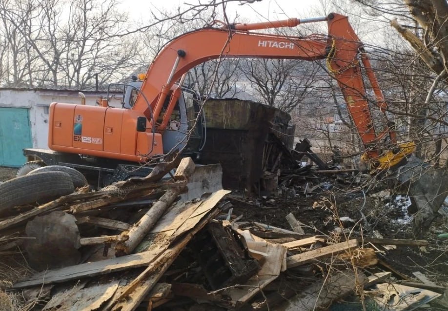 В первую очередь убирают пожароопасные и аварийные некапитальные строения. Демонтаж уже проведён на улицах Первомайской и Морской. Далее работы продолжатся на улицах Гвардейской, Корсаковской и Дзержинского, а также в селе Озерское.