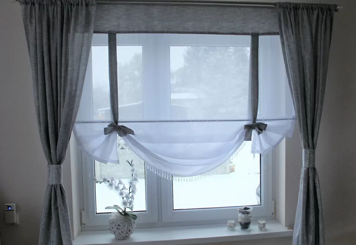 - Забудьте про короткие шторы. Раньше укороченные занавеси на кухне считались нормой. Теперь же они представляют собой признак устарелости. Современные тенденции требуют длинных, лёгких штор или элегантных рулонных вариантов, избегая вертикальных конструкций, напоминающих офис.