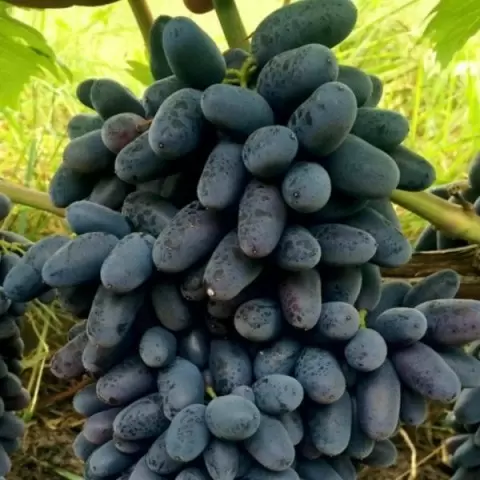 Грозди достигают в среднем 900 граммов и отличаются рыхлой структурой, обеспечивающей хорошую вентиляцию, что снижает вероятность заболеваний. Ягоды имеют привлекательный сине-черный цвет, плотную, но не слишком жесткую кожицу, благодаря чему они хорошо переносят транспортировку.