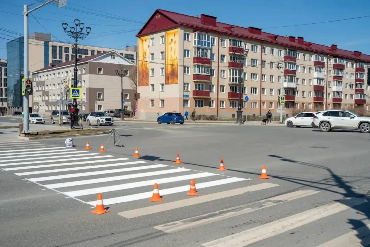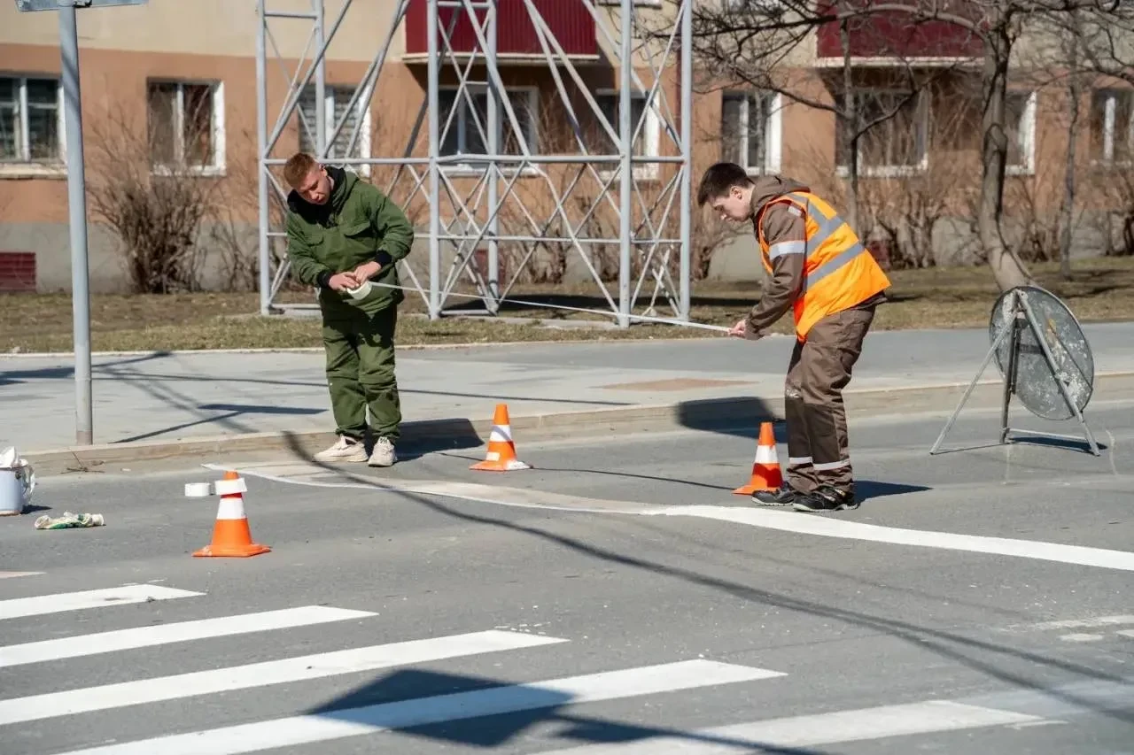 В областном центре приступили к нанесению свежей разметки после зимнего сезона. В пятницу работы вели на пешеходных переходах в районе перекрестков проспектов Мира и Победы, а также улицы Горького и Компроспекта.