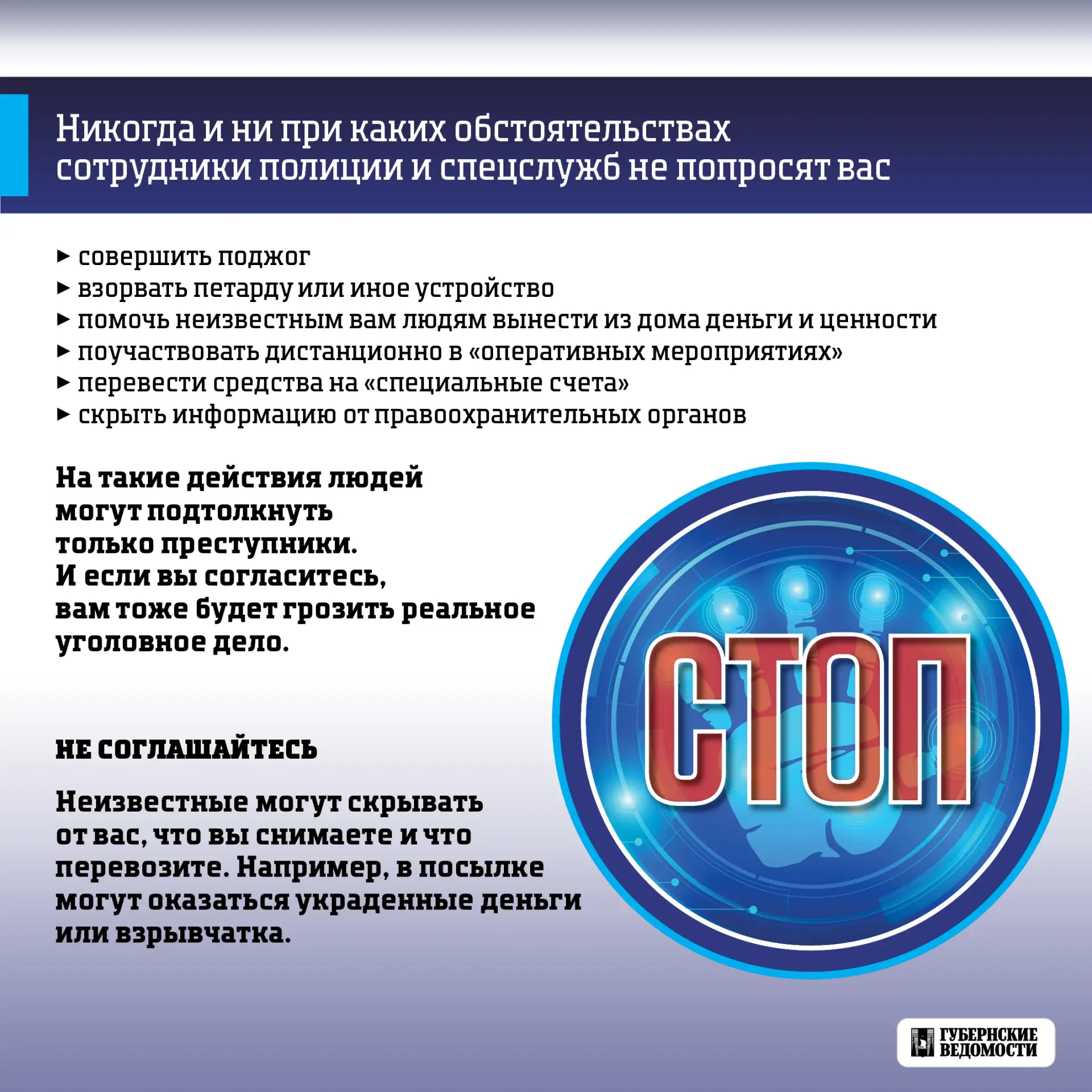 Если вам предлагают «секретное задание», давят на вас или наоборот обещают «всё уладить» — это схема злоумышленников.