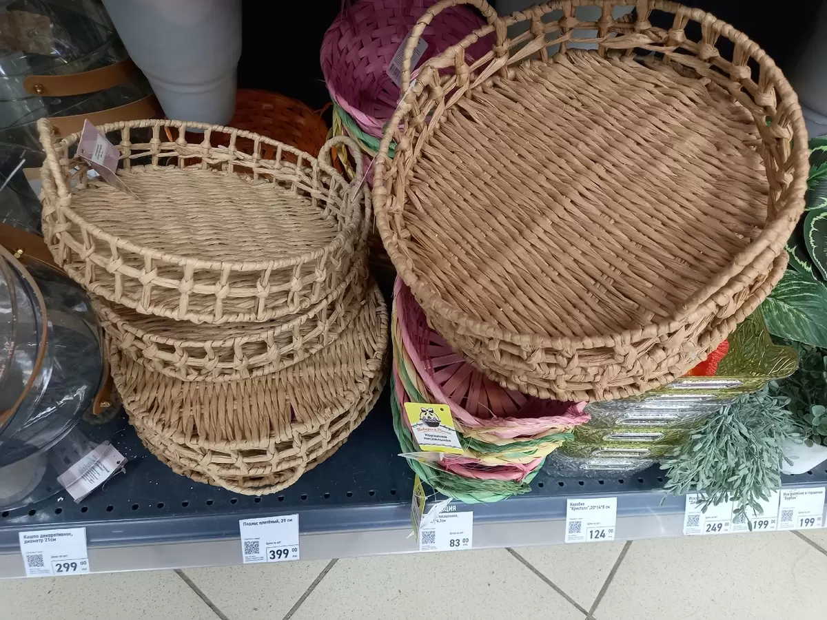 В последних партиях появились корзины различных форм и расцветок: от нежно-розовых до нейтральных белых и серых. Несмотря на красивые дизайн и привлекательные цены, стоит быть осторожным при выборе. Большинство из них можно использовать в качестве подносов, подставок для растений или даже в качестве хранения для мелочей.