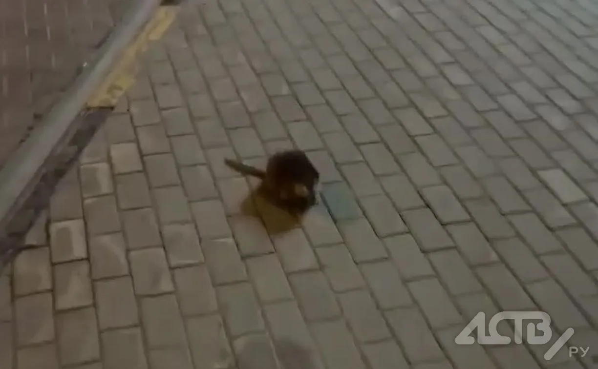 Эмоциональная ондатра повстречалась на пути жительнице Южно-Сахалинска