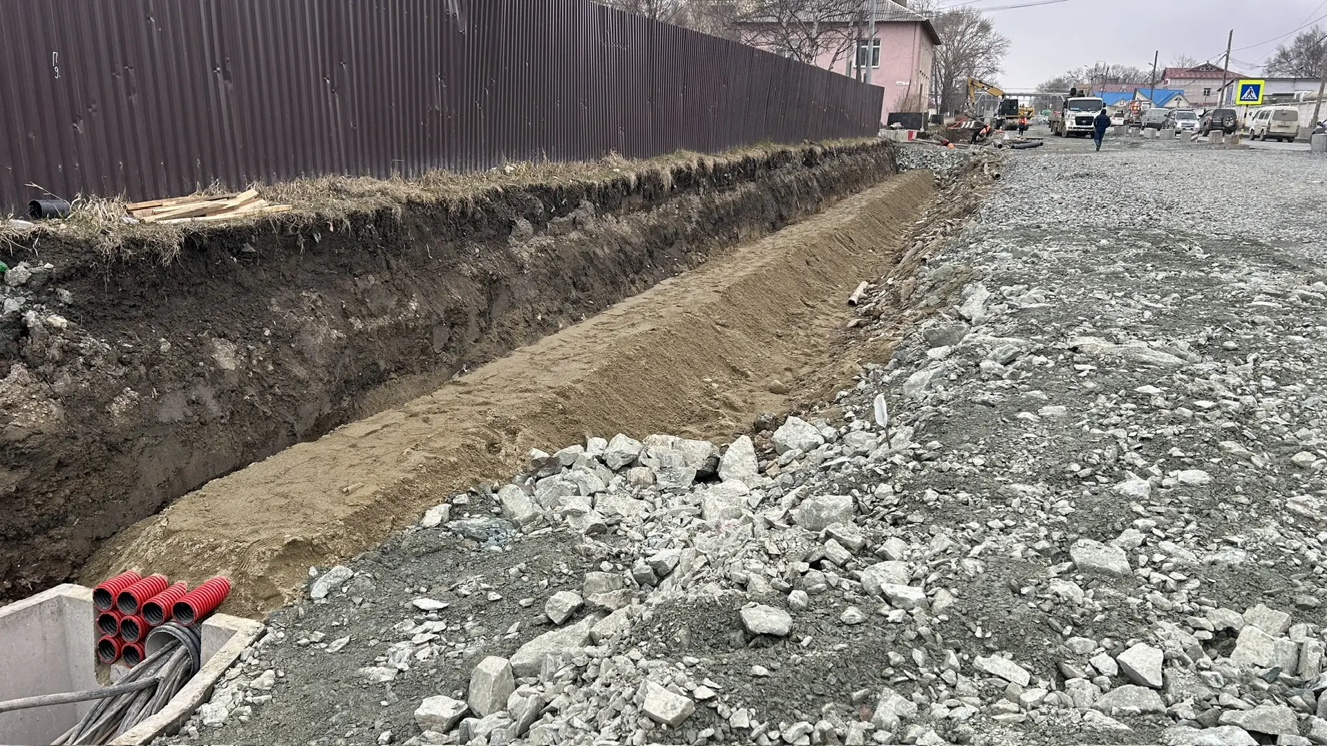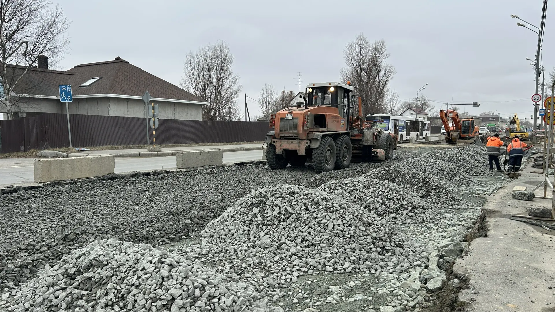 Подрядчик начал устройство щебеночного основания на участке проспекта в районе пересечения с улицей Украинской. В настоящее время работы ведутся с восточной стороны дороги. После подготовки основания будет выполнено асфальтирование. На других участках продолжают разработку основания автодороги, переустройство сетей связи и водоснабжения, монтаж колодца ливневой канализации. В работах на объекте задействованы 65 человек и 29 единиц техники,