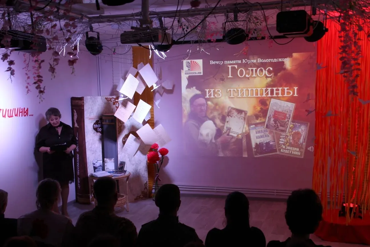 В рамках Всероссийской акции «Библионочь-2026» Центральная библиотека Макаровского муниципального округа провела вечер памяти «Голос из тишины», посвящённый Году единства народов России и памяти поэта Юрия Вологодского (Волка), умершего от ран в ходе специальной военной операции.