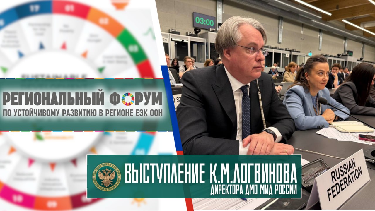 Из выступления директора ДМО МИД России К.М.Логвинова в ходе сегмента высокого уровня Регионального форума ЕЭК ООН по устойчивому развитию: