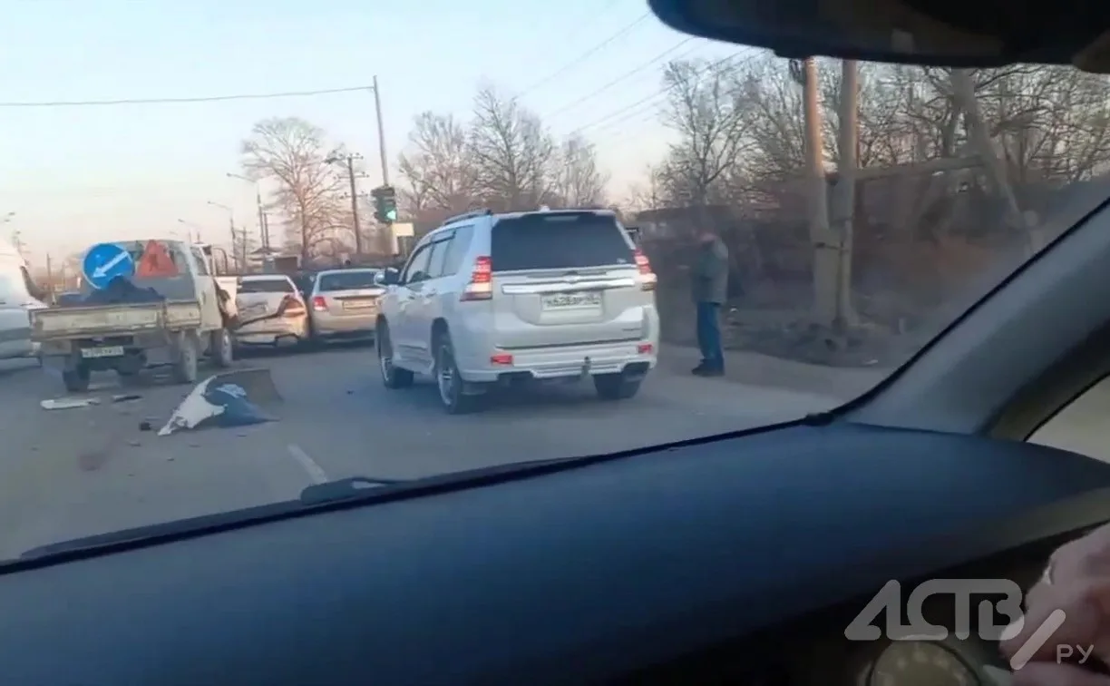 Последствия массового ДТП на Холмском шоссе сняли на видео в Южно-Сахалинске