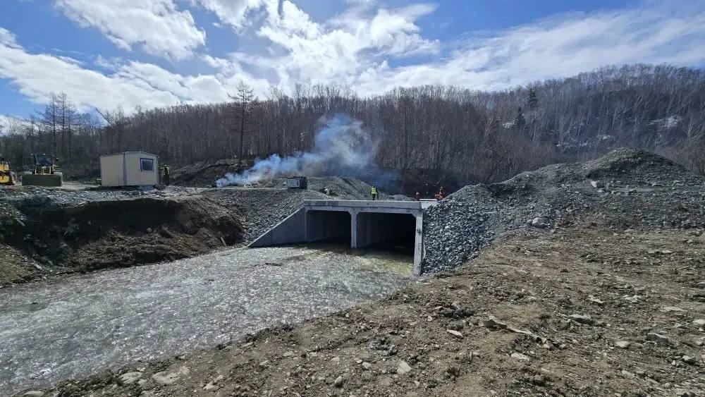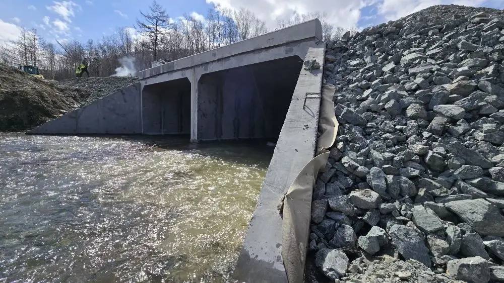 Подрядчик завершает работы на объекте и опережает сроки строительства. Специалисты уже установили две железобетонные водопропускные трубы. Фактически они становятся опорами, а их диаметр позволяет конструкции пропускать большее количество воды, теперь мосту не страшны паводки. Сейчас техника готовит подъездные пути, их будут асфальтировать в начале лета.