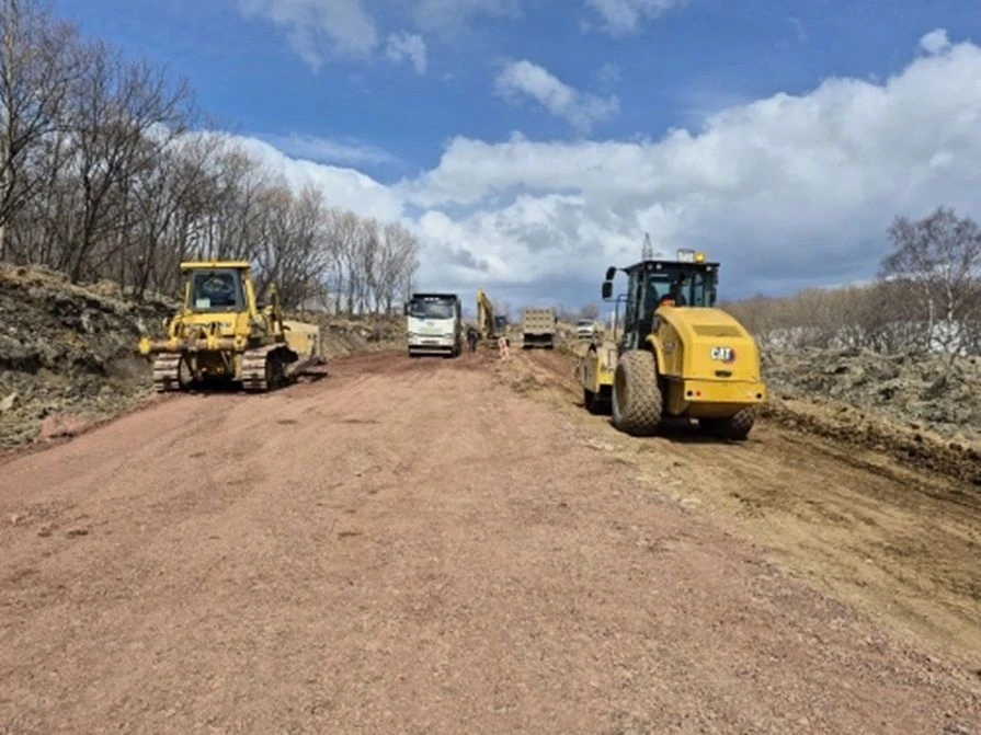 С наступлением тепла подрядная организация — акционерное общество «Долинское ДРСУ» — возобновила работы и на участке с 49 километра по 54 километр. Ранее подрядчик снял здесь более 11 тысяч кубометров почвенно-растительного слоя, выполнил комплекс работ по нарезке уступов и рыхлению грунта, устройству рабочего слоя из дренирующего грунта, а также устройству двух железобетонных труб.