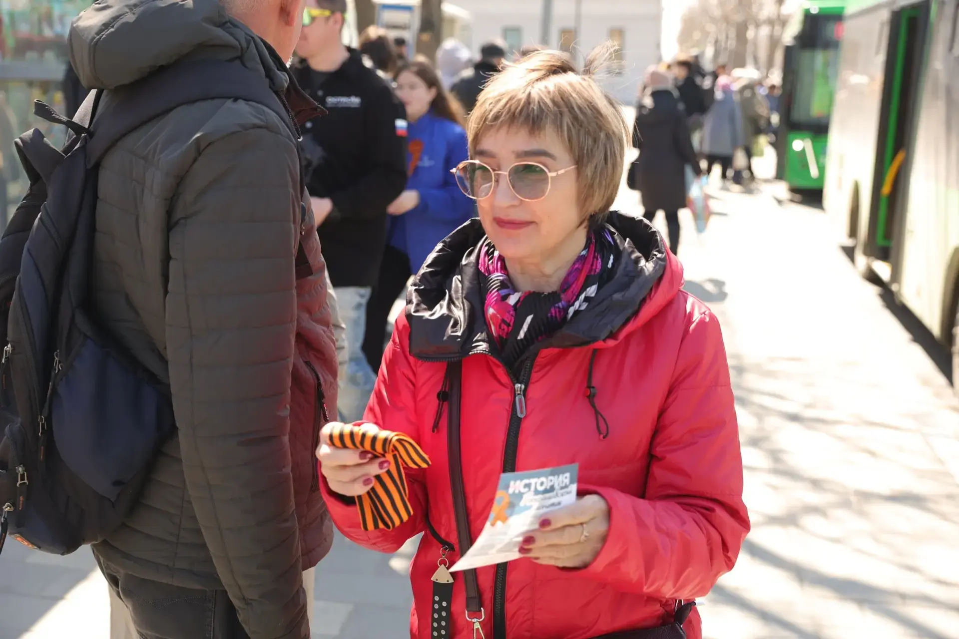 До 9 мая добровольцев можно встретить в парках, скверах и на центральных улицах. Всего планируют раздать 15 тысяч лент. В акции участвуют более 200 добровольцев из движений «Волонтеры Победы», «Юнармия», «Молодая Гвардия», а также представители казачества.