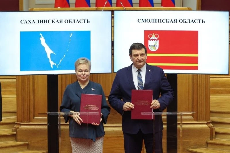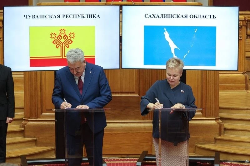 Спикер парламента Елена Касьянова от имени Сахалинской областной Думы заключила Соглашения о сотрудничестве со Смоленской областной Думой и Государственным Советом Чувашской Республики.