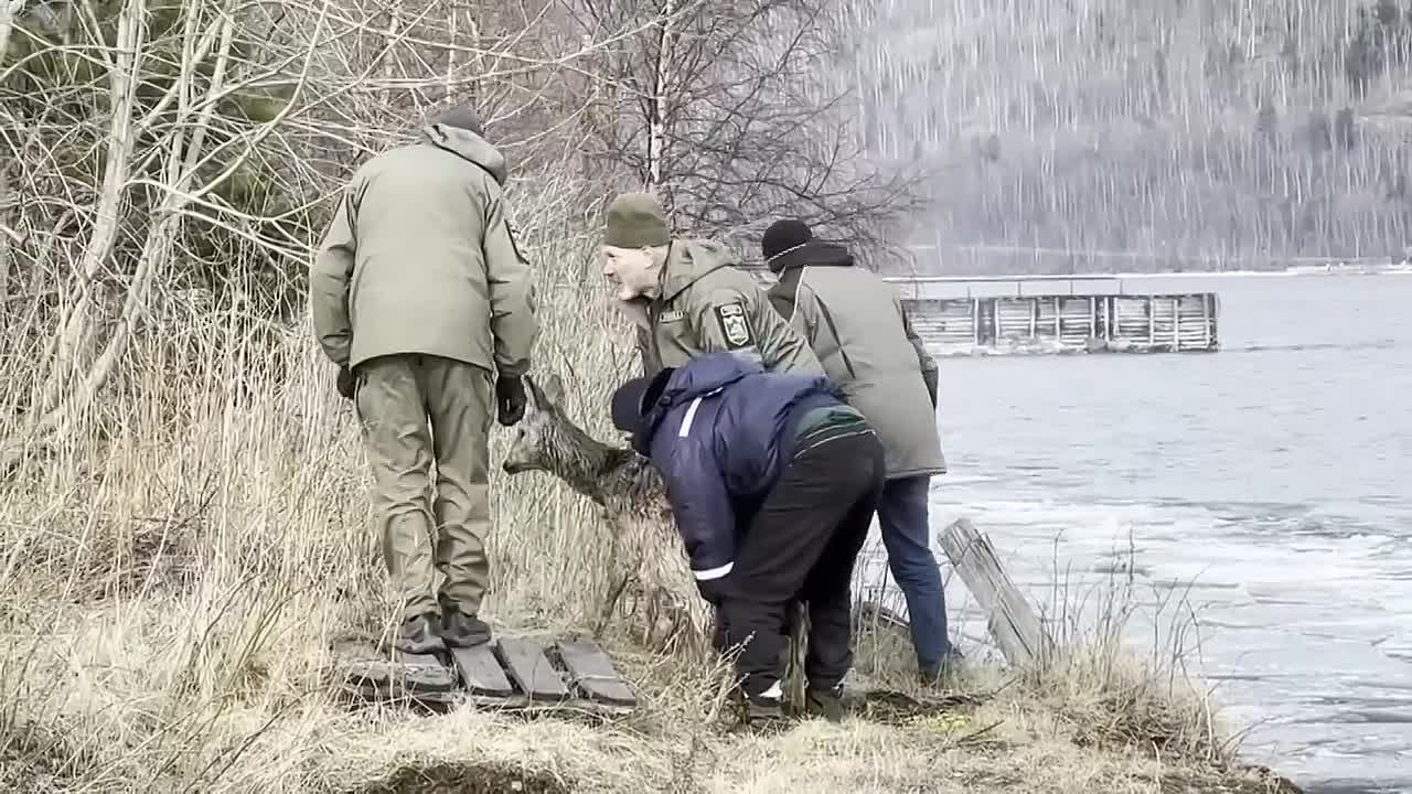 Иркутские моряки спасли беременную косулю с оторванной льдины