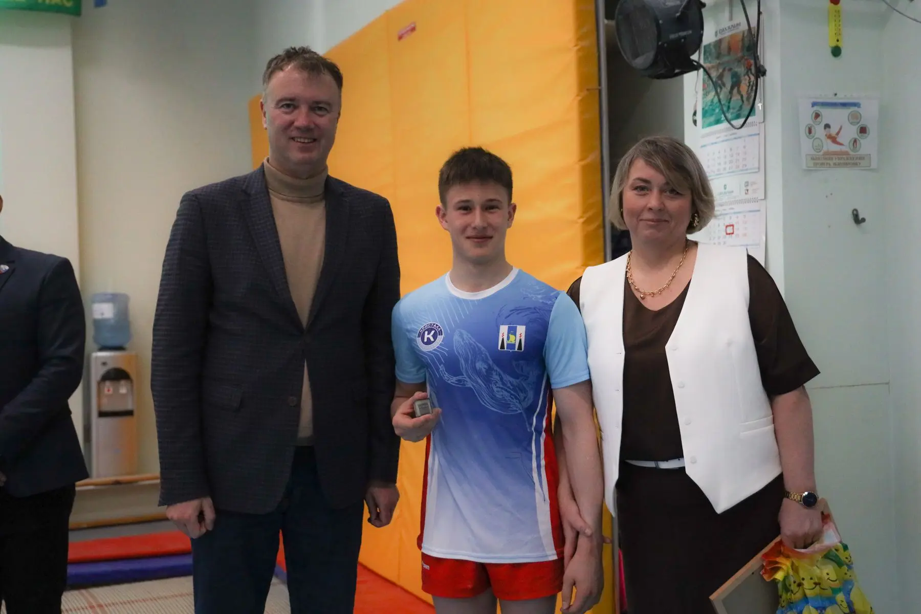 Замглавы островного минспорта вручил удостоверение и знак кандидата в мастера спорта России островному гимнасту Максиму Тихомирову.