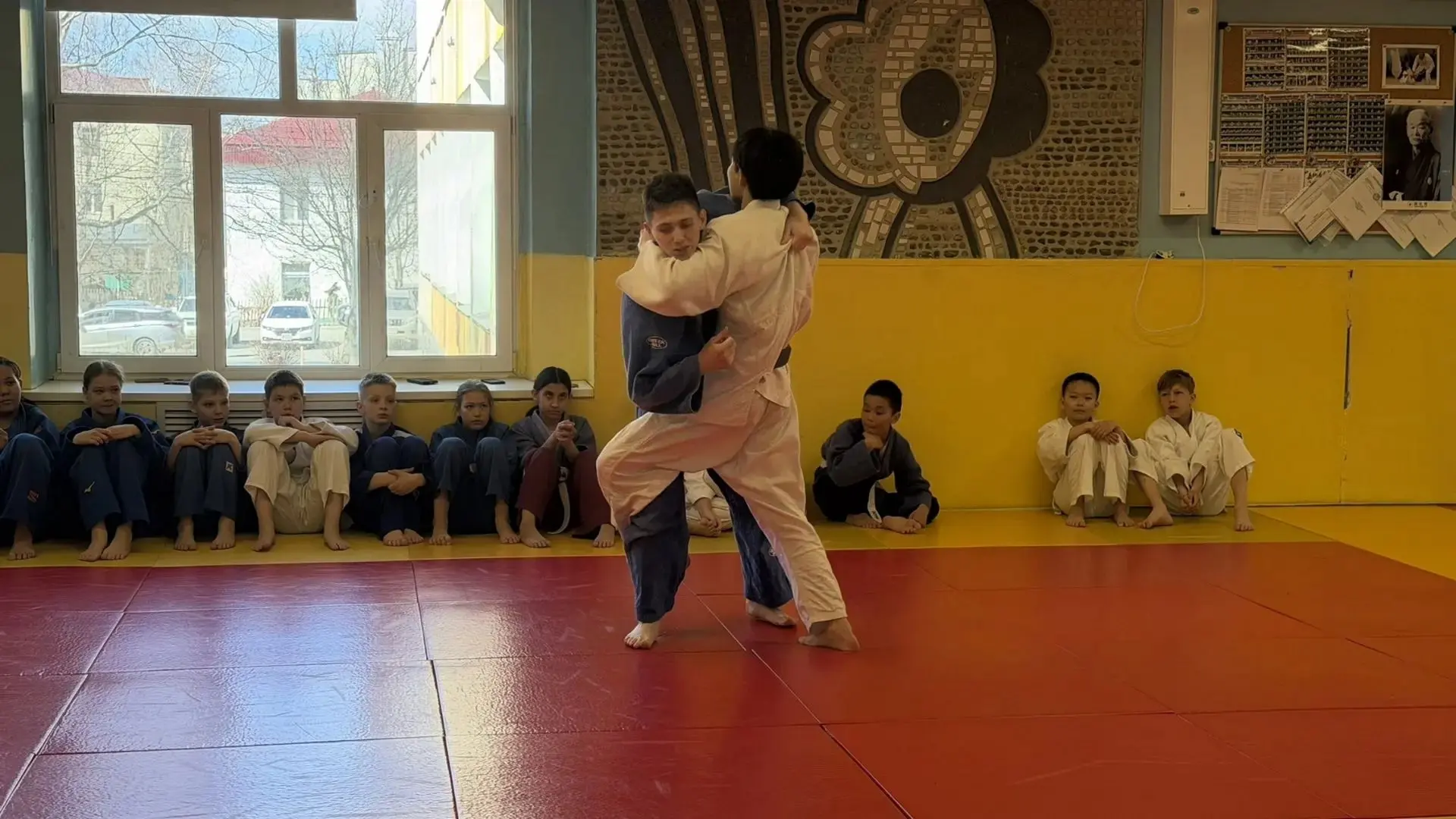 На этот раз в гости к учащимся отделения пришли София Некрасова (мастер спорта РФ по самбо и КМС по дзюдо), Эмир Айсин, Альберт Ким и Никита Шильников (КМС по дзюдо и самбо, неоднократные призеры областных и дальневосточных соревнований).