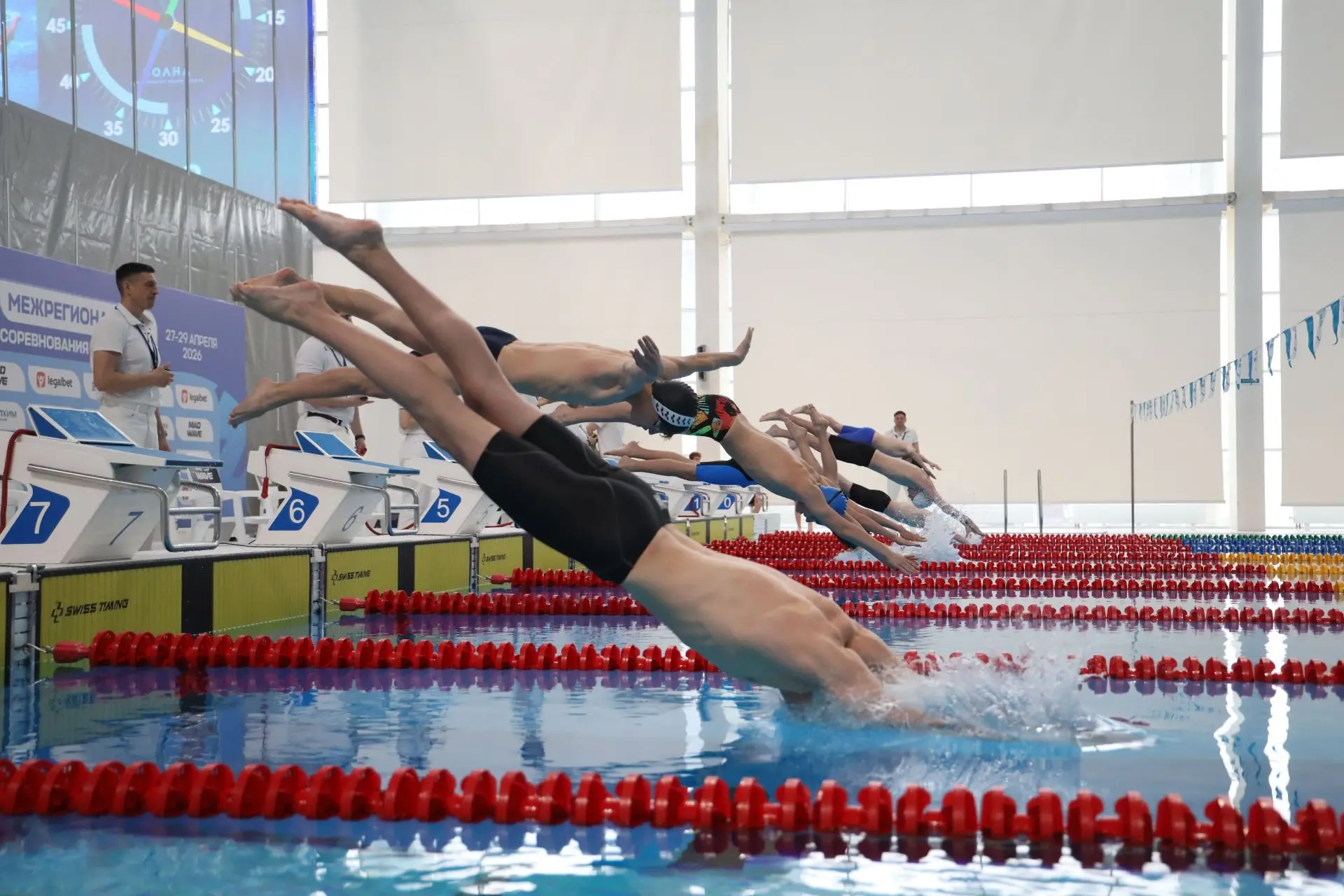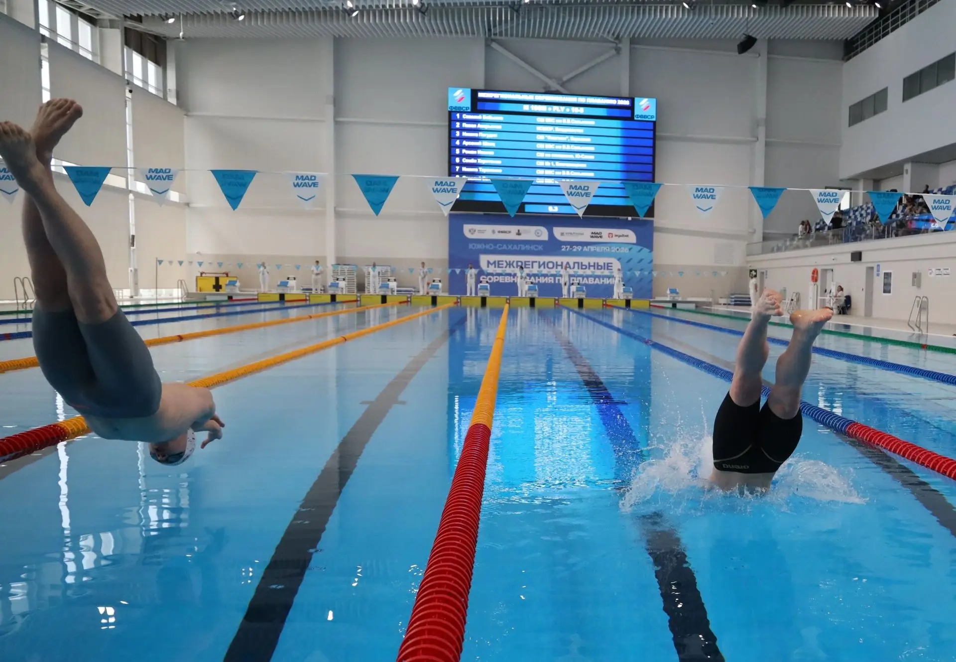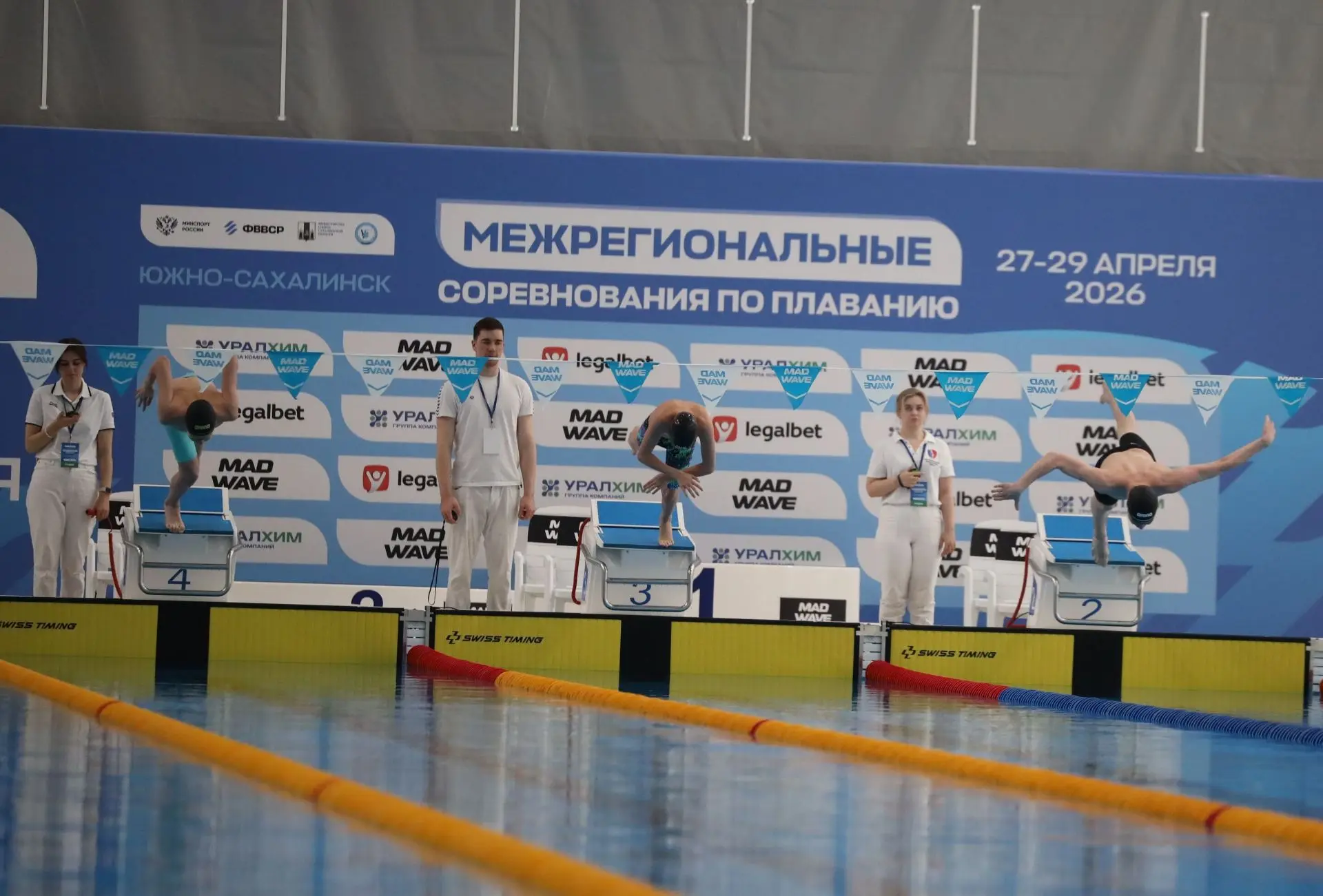 Межрегиональные соревнования по плаванию проходят в центре водных видов спорта «Волна». Турнир объединяет два старта: межрегиональный и состязания Кубка Сахалинской области, которые собрали атлетов из пяти дальневосточных субъектов.